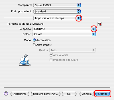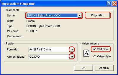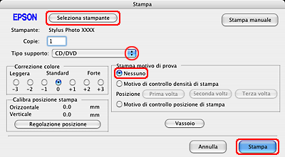 Selezionare CD/DVD o CD/DVD Superficie Premium come impostazione di Supporto.