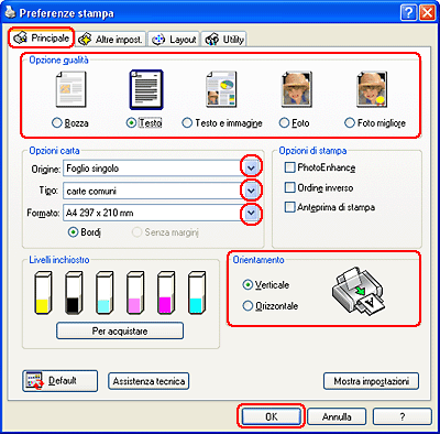 Fare clic su OK per chiudere la finestra delle impostazioni della stampante.