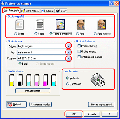 Fare clic su OK per chiudere la finestra delle impostazioni della stampante.