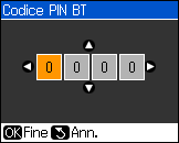 Premere il pulsante o sulla stampante per selezionare Codice PIN BT, quindi premere il pulsante sulla stampante.