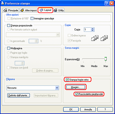 Questa funzione non risulta disponibile con la stampa senza margini.
