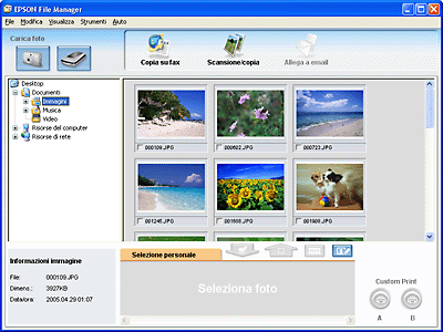 ![]() Da EpsonFile Manager, è possibile selezionare più immagini e stamparle, trascinarle in un documento o allegarle a un messaggio di posta elettronica.