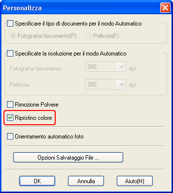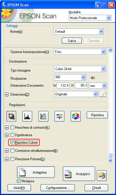 Per ripristinare i colori utilizzando Epson Scan, effettuare i passaggi che seguono.