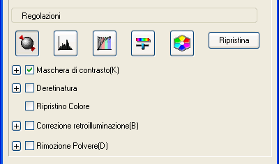 Prima di effettuare regolazioni, assicurarsi di fare clic sull'immagine o sul riquadro di selezione che delimita l'area da regolare. Nel Modo Professionale, potrebbe essere necessario scorrere verso il basso fino all'area Regolazioni della finestra principale di Epson Scan.