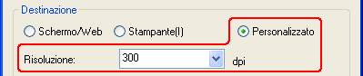 Personalizzato se si desidera selezionare una risoluzione specifica per impieghi diversi.
