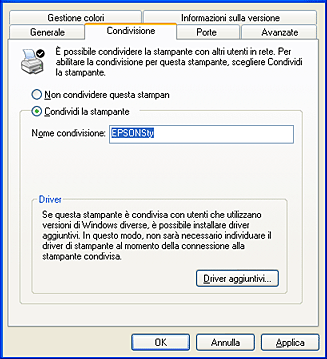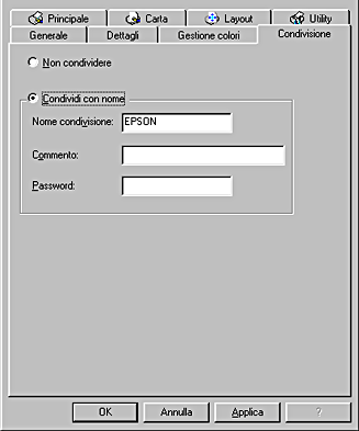 Fare clic sul pulsante Impostazione. Viene visualizzata la finestra di dialogo Condividi stampante.