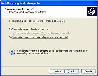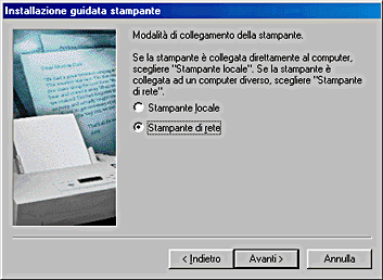Selezionare Stampante di rete, quindi fare clic su Avanti.