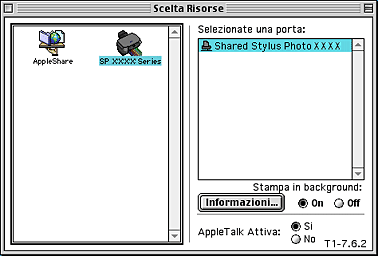 Questa sezione spiega come configurare questo prodotto in modo da poter essere utilizzato su una rete AppleTalk. Configurando il prodotto come stampante condivisa, la stampante locale viene connessa alla rete e può essere utilizzata da altri computer.