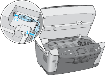 ![]() | Collegare il connettore del cavo USB (scollegato precedentemente da questo prodotto) alla porta USB di questo prodotto e quindi collocare il relativo cavo nell'apposita sede. |