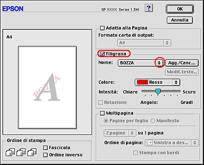 Stampa di filigrane in Macintosh