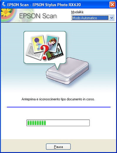 EPSON Scan automaticamente visualizza in anteprima l'immagine e ne riconosce il tipo.