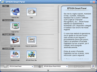 Per informazioni sul software EPSON Smart Panel, fare clic sul punto interrogativo nell'angolo inferiore destro della finestra.