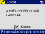 , quindi premere il tasto OK. Verificare i messaggi sul pannello LCD e premere il tasto OK per avviare la sostituzione della cartuccia d'inchiostro.
