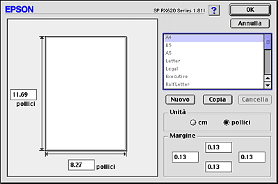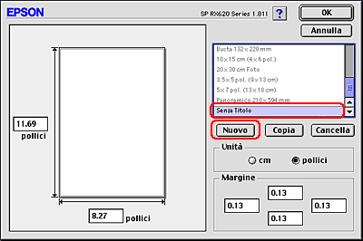 Se il formato carta richiesto non è compreso nell'elenco Formato carta nella finestra di dialogo Formato di Stampa, eseguire le operazioni indicate di seguito per definire un formato carta personalizzato.
