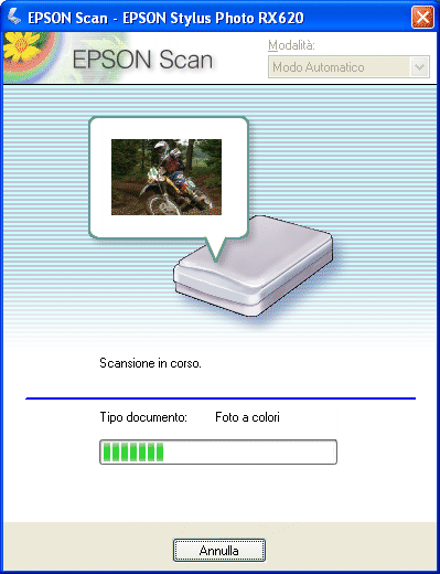 Tenere presente che se si fa clic su Annulla in questa schermata, EPSON Scan verrà terminato.