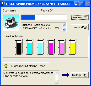 ![]() | Nell'elenco delle stampanti, fare doppio clic su Stylus Photo RX620. |