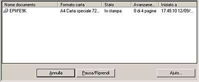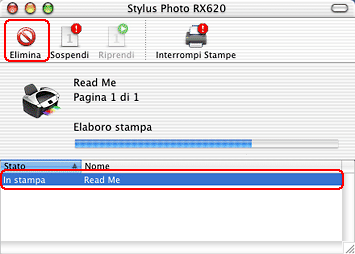 ![]() | Selezionare il documento in fase di stampa dalla colonna Nome e quindi fare clic sul pulsante Elimina per annullare il lavoro di stampa. |