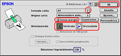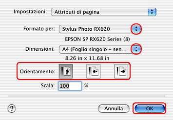 Selezionare Stylus Photo RX620 come impostazione di Formato per.