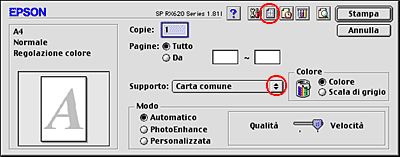 Questa funzione non è disponibile quando si seleziona la casella di controllo Senza margini nel menu Principale (Windows) o nella finestra di dialogo Formato di Stampa (Mac OS 9).