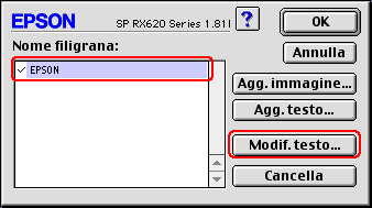 È possibile inoltre aggiungere, all'elenco Filigrana, filigrane di tipo testo o immagine definite dall'utente.