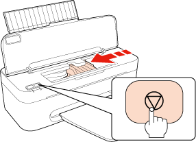 Jei spausdinimo galvutei sugrįžus į pradinę padėtį šviečia  (Klaidos) lemputė, galbūt netinkamai įstatyta rašalo kasetė. Dar kartą paspauskite  (Sustabdymo/Priežiūros) mygtuką, o tada paspauskite žemyn rašalo kasetę, kad ji spragtelėtų užsifiksuodama savo vietoje.