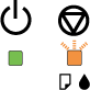 Klaidų indikatoriaiDaugelį dažniausiai sutinkamų spausdintuvo trikčių galite nustatyti pagal spausdintuvo lemputes. Jei spausdintuvas nustoja spausdinti, ir jo lemputės šviečia arba mirksi, naudokite toliau pateiktą lentelę trikties nustatymui, tada atlikite rekomenduojamą veiksmą trikčiai pašalinti.