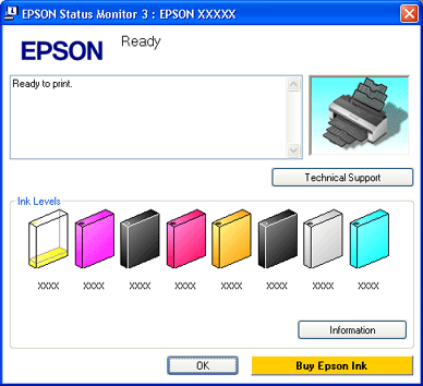 ![]() Priemonės EPSON Status Monitor 3 naudojimasEPSON Status Monitor 3 rodo išsamią informaciją apie jūsų spausdintuvo būseną.