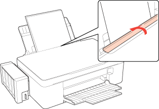 Pastumiet uz priekšu papīra padeves aizsargu.