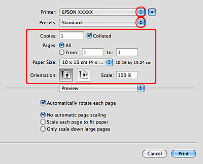 Uznirstošajā izvēlnē izvēlieties Print Settings.