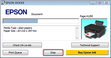 Stop/Clear, lai atceltu aktīvo drukas darbu.