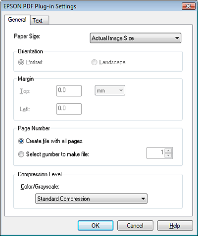 Lai iegūtu sīkāku informāciju par citiem iestatījumiem logā EPSON PDF Plug-in Settings (EPSON PDF spraudņa iestatījumi), skatiet Epson Scan Help (Epson Scan palīdzība).