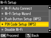 PIN code Setup (WPS) (PIN koda iestatīšana (WPS)) un tad nospiediet pogu