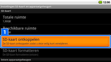 ] vanuit het startscherm en selecteer dan SD-kaart en apparaatgeheugen.