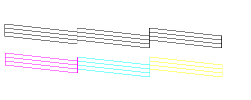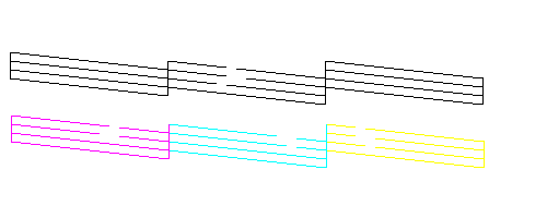 Als de kwaliteit niet goed is, is er iets mis met het apparaat. Mogelijk is er sprake van een verstopt spuitkanaaltje of een onjuist uitgelijnde printkop. Zie De printkop reinigen voor meer informatie over het reinigen van de printkop. Zie De printkop uitlijnen voor informatie over het uitlijnen van de printkop.