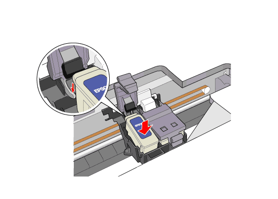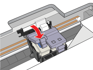 Pas de cartridge op de juiste wijze in de geopende cartridgeklem, zoals hieronder wordt geïllustreerd.