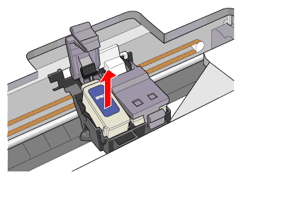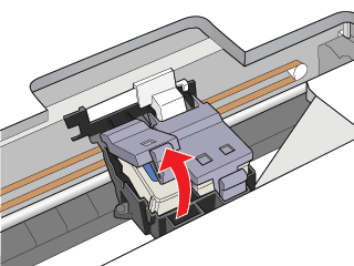 Breng de cartridgeklem zo ver mogelijk omhoog. De cartridge komt gedeeltelijk omhoog uit de houder.