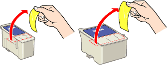 Verwijder de nieuwe cartridge uit de verpakking en verwijder vervolgens alleen de gele beschermstrook van de cartridge.