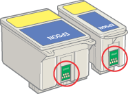 Raak de groene chip op de zijkant van de cartridge niet aan. Anders bestaat de mogelijkheid dat de normale werking wordt geschaad.