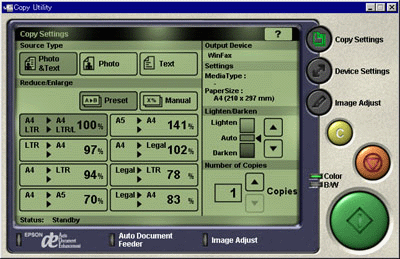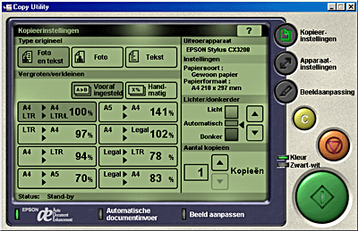 Met deze toepassing verandert u dit apparaat in een digitaal kopieerapparaat. De toepassing lijkt op een echt kopieerapparaat, maar de functies ervan zijn een stuk krachtiger en flexibeler dan die van een traditioneel apparaat. Raadpleeg de documentatie bij EPSON Smart Panel voor meer informatie.