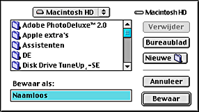 ![]() | Selecteer de locatie waar u het bestand wilt opslaan en typ een bestandsnaam in het tekstvak Bewaar als (Save As) en klik op de knop Bewaar (Save). |