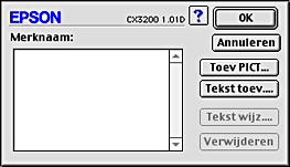 ![]() | Om een beeldbestand als watermerk te gebruiken, klikt u op de knop Toev PICT. Geef het gewenste beeldbestand op en klik op Open. |
