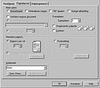 Bij Meerdere pagina's kunt u de optie Pagina's per vel of Posterafdruk kiezen. Raadpleeg het betreffende gedeelte hierna.