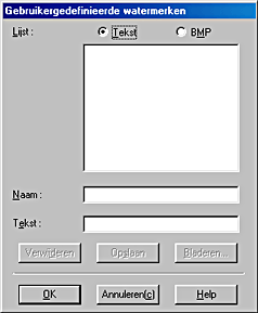 U kunt ook watermerken met uw eigen tekst of afbeeldingen toevoegen aan de lijst Watermerk. Klik op de knop Toev./Verw. om een watermerk toe te voegen. Het volgende dialoogvenster verschijnt.