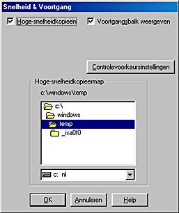 Selecteer Hoge-snelheidkopieën als u meerdere exemplaren van uw document sneller wilt afdrukken. De afdruksnelheid wordt verhoogd doordat bij het afdrukken van meerdere exemplaren van een document de ruimte op de vaste schijf als cache wordt gebruikt.