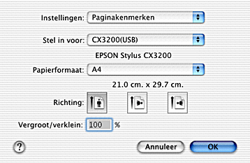 In het dialoogvenster voor de pagina-instelling kunt u het papierformaat wijzigen, de afdrukstand opgeven en de afdruk groter of kleiner maken.