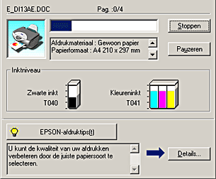 U kunt het afdrukken annuleren met behulp van de voortgangsbalk of de EPSON Spool Manager. Raadpleeg het betreffende gedeelte hierna.