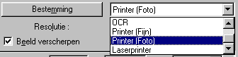 Als u gescande afbeeldingen wilt afdrukken met in uw pirntersoftware de instellingen voor zuinig, normaal of fijne afdrukkwaliteit, raden wij u aan om de optie Printer (Fijn) te selecteren. Als u afdrukt met de instelling superfijn of fotokwaliteit, selecteert u Printer (Foto).