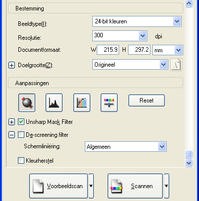 ![]() | Klik op de knop Voorbeeldscan om de afbeeldingen te bekijken. |