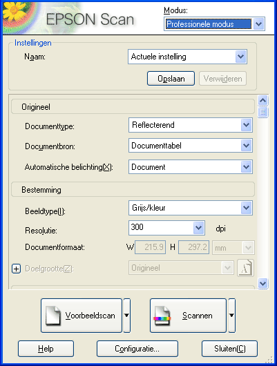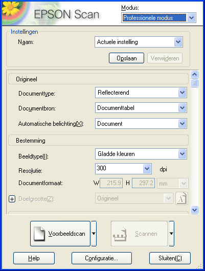 ![]() | Start EPSON Scan en selecteer de professionele modus. Zie De scanmodus wijzigen voor meer informatie over het selecteren van een scanmodus. |