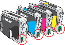 Probeer de cartridges niet bij te vullen. Dit apparaat berekent de hoeveelheid resterende inkt met behulp van een speciale chip in de cartridge. Zelfs als de cartridge wordt bijgevuld, zal de chip de hoeveelheid resterende inkt niet opnieuw berekenen. Aan de hoeveelheid inkt die nog kan worden gebruikt, verandert dus niets.